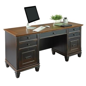 Hartford Double Pedestal Desk - The hartford collection combines bold lines with a weathered, vintage finish and classic style elements.